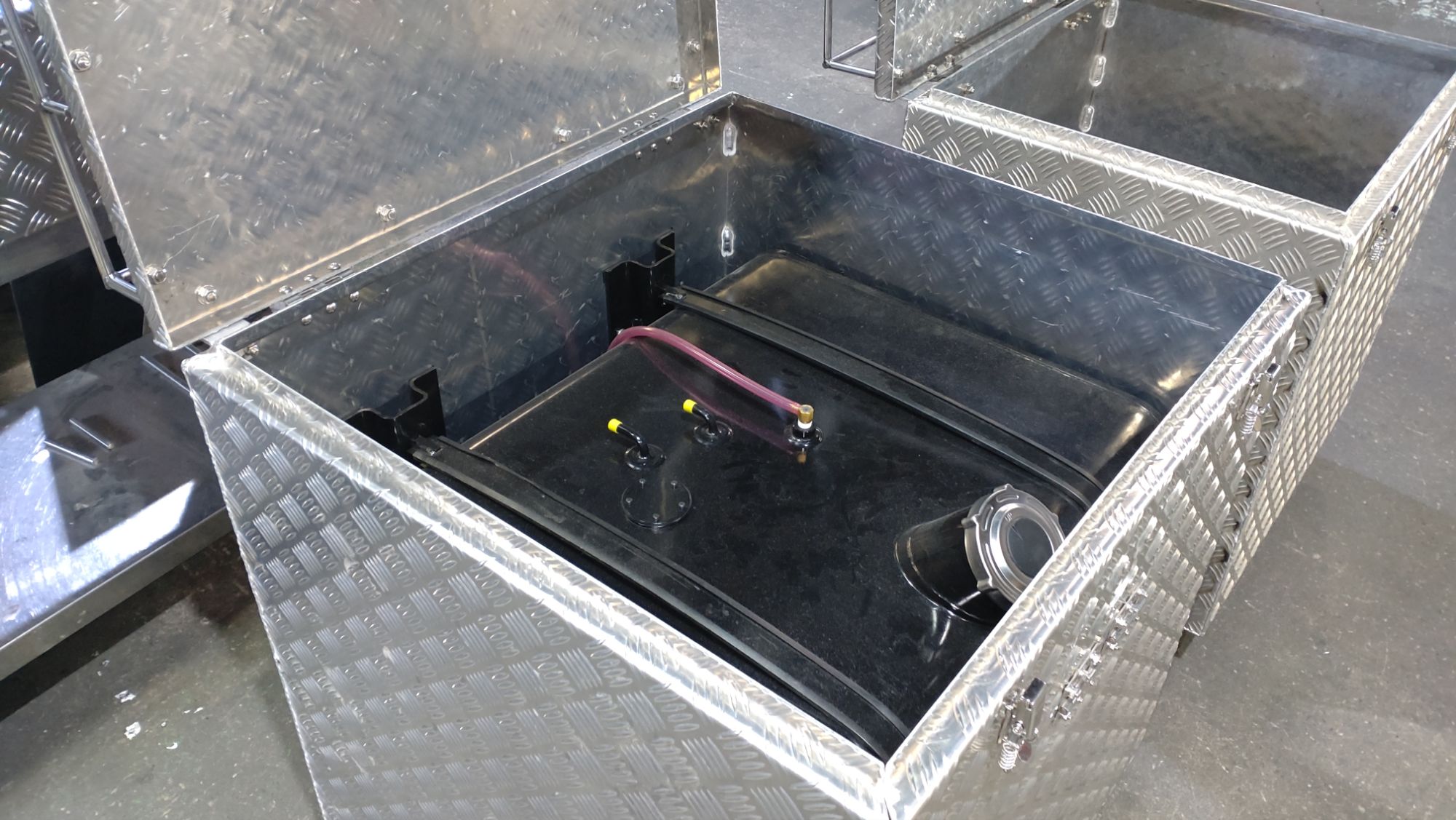 アルミ縞板仕様タンク収納ボックスを製作させていただきました